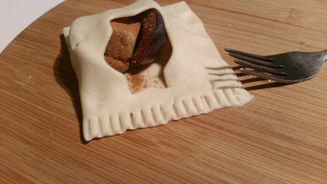 Przy pomocy widelca sklejam oba kawałki ciasta