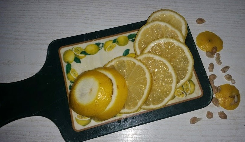 3.Pora na na utarcie cytryny włącznie ze skórką. Cytrynę wcześniej myję letnią wodą, później sparzam wrzątkiem, następnie kroję ją w plastry, żeby łatwiej było wyjąć wszystkie pestki.