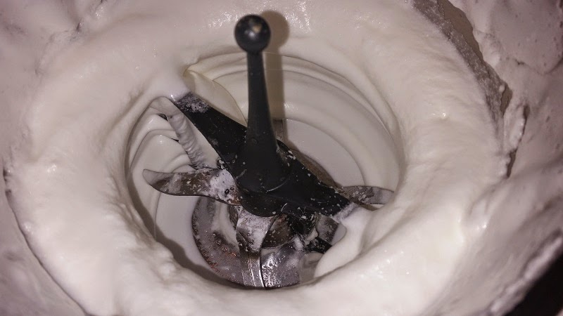7.Zdejmuję urządzenie z silnika , dodaję ubitą wcześniej pianę z białek i łopatką mieszam z ciastem.