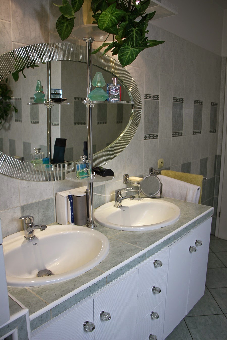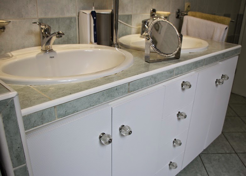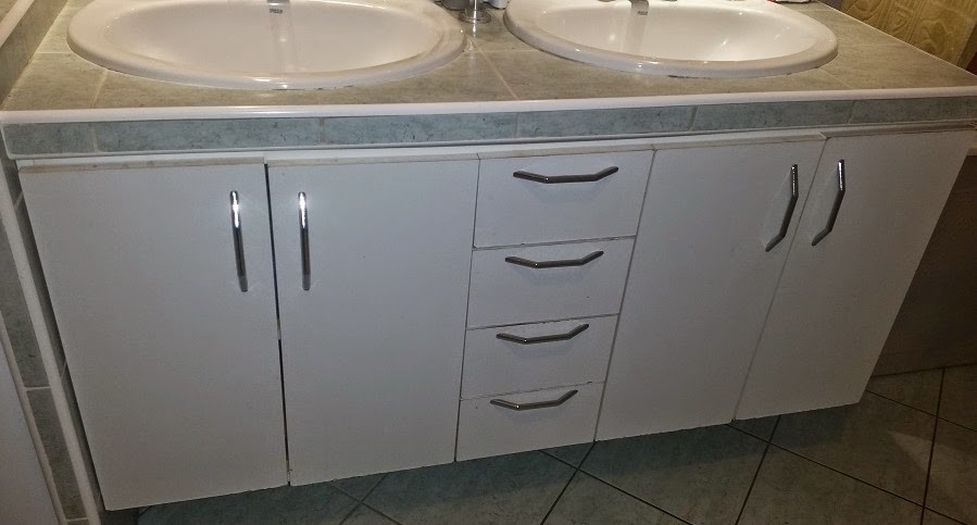 Nie mogłam już patrzeć na zniszczone 15-letnie szafki w łazience więc postanowiłam coś zmienić – pomyślałam, że gorzej być nie może – więc nie wiele ryzykuję. Nie pomyliłam się szafki wyglądają super. Spędziłam przy tym prawie cały dzień, ale nabyłam wprawy i dzięki temu chęć na odnowienie szafek w kuchni 🙂
