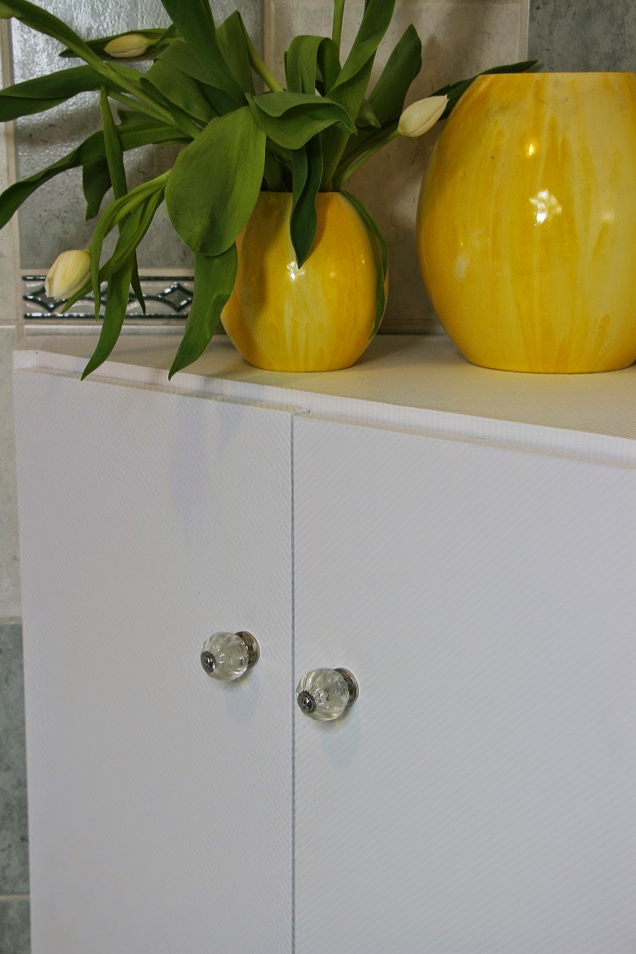 Meble z płyty MDF da się pomalować, ale to bardzo pracochłonna czynność i wiąże się z ogromnym bałaganem. Postanowiłam wprowadzić w życie prostszą wersję zmian – oklejenie szafek okleiną meblową. Szukałam tylko ofert z kolorem białym – i tych niestety nie było bardzo dużo. Tu linki do „bogatych” ofert :  http://allegro.pl/sklep/26490032_naszeokleiny-folie-okleiny oraz to co wybrałam http://allegro.pl/sklep/23388180_folie-tuning . Trochę trwało wybieranie okleiny, ponieważ kupowałam próbki i dopiero „na żywo” wybierałam okleinę. Uważam, że inaczej się nie da – zdjęcia bardzo zmieniają rzeczywistą fakturę.