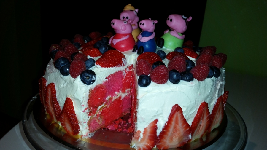 Tort był z biszkoptu i klasycznego murzynka z bitą śmietaną. Musiałam mocno gospodarować czasem, żeby samodzielnie upiec tort a wszystko po to aby jedenastolatka nie miała gorszego tortu od trzylatki:
