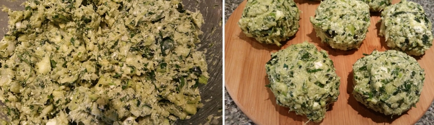 • W misce ręcznie mieszamy odciśnięte warzywa z fetą ,mąką oraz z czarnym mielonym pieprzem