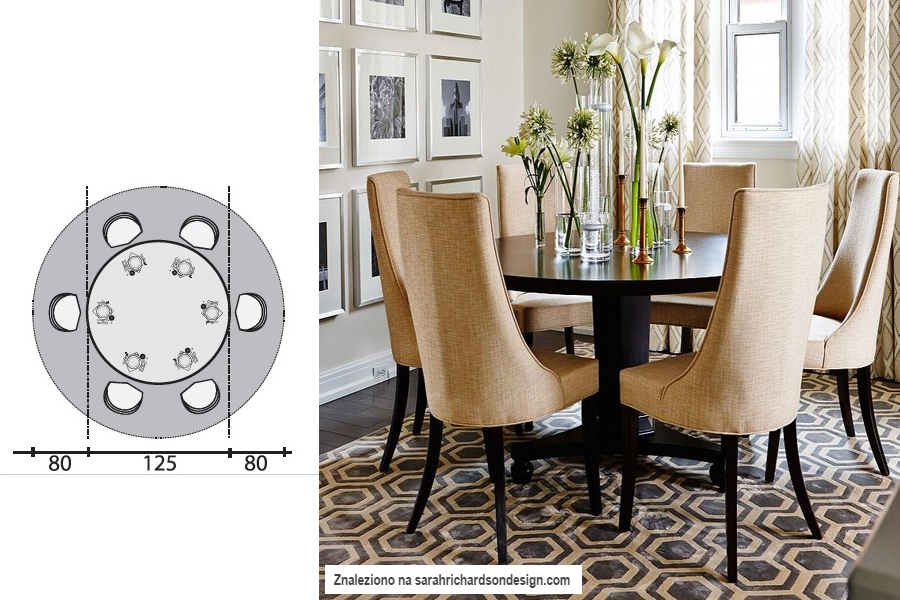 Poniżej podpowiem ile osób swobodnie mieści się przy różnych wielkościach okrągłego stołu.
