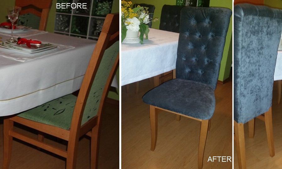Z tyłu krzeseł według najnowszych wytycznych mody powinny być pinezki tapicerskie, ale ja osobiście za nimi nie przepadam więc moja wersja jest bardziej „sote”.