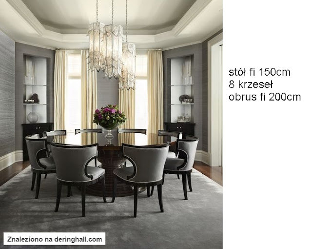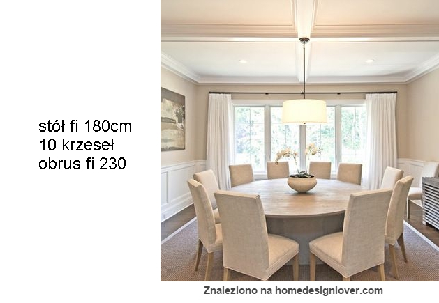 Stół o wymiarach fi 125 wymaga obrusu ok. fi 180cm