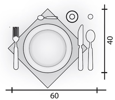 Jedna osoba, aby swobodnie czuła się przy stole wymaga następującego miejsca (podaję w cm):