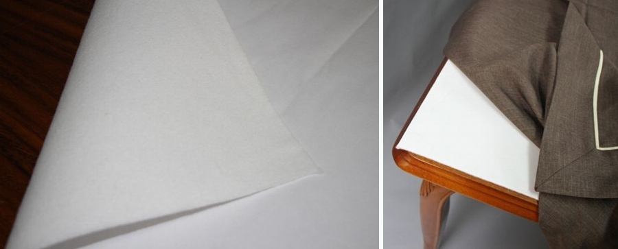 Najlepszą ochroną stołu jest specjalna dwustronna włóknina, którą kładzie się bezpośrednio na stół i przykrywa obrusem. W przypadku wylania gorącego płynu na blat stołu zrobi się plama na blacie stołu – odparza się lakier. Naprawa wymaga szlifowania i malowania powierzchni stołu. Podkład zabezpieczający stół nigdy do tego nie dopuści. Taki podkład to z jednej strony mięciutka włóknina, która nie rysuje powierzchni stołu, Druga strona to gładka powierzchnia, która nie przepuszcza płynów i chroni przed wysoką temperaturą. Taki zabezpieczający podkład szczególnie polecam do nowych stołów, które nakrywamy tkaninami naturalnymi.