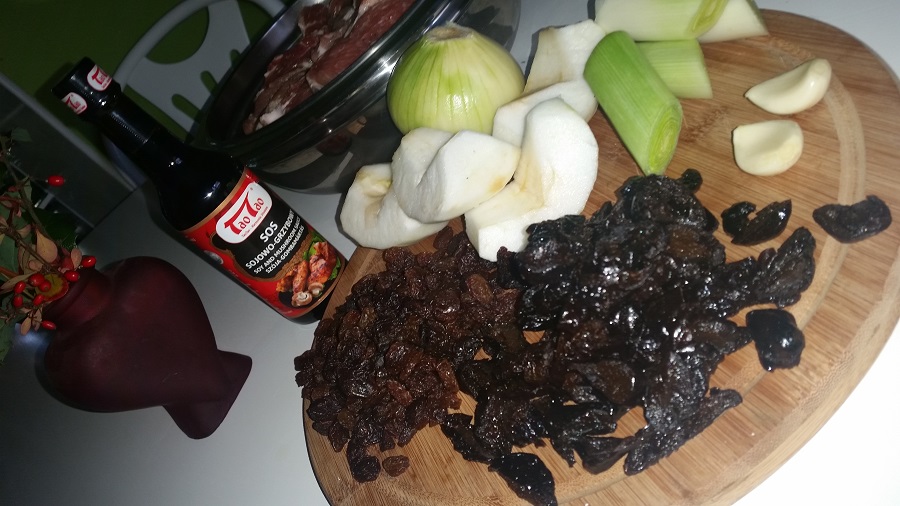 - duszę całość na małym dopływie ciepła przez ok.2 h (do czasu gdy mięso jest miękkie)