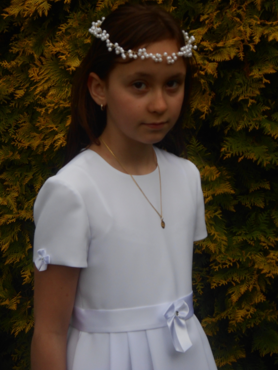 Dla mnie jest to najłatwiejszy punkt. Wszystkie dzieci w mojej parafii maja identyczne ubrania. Podczas wspólnego wybierania ubranek siedzę na końcu cicho dopóki mamy nie przeginają. W ubiegłym roku poszło gładko. Mamy wybrały skromną sukienkę w przystępnej cenie. Mi osobiście bardziej podobała się inna sukienka, ale byłam cichutko i nie mąciłam ogólnej ugody.