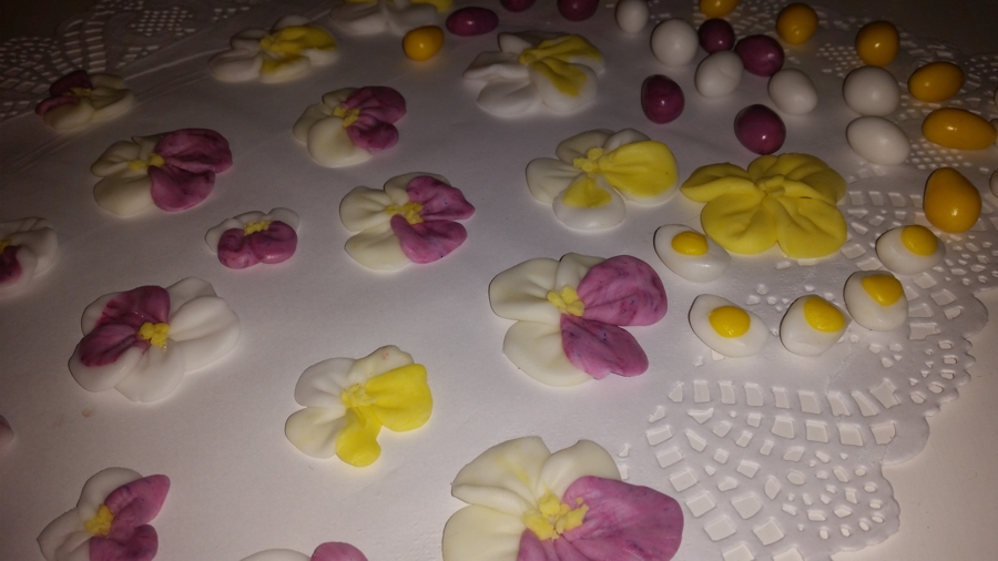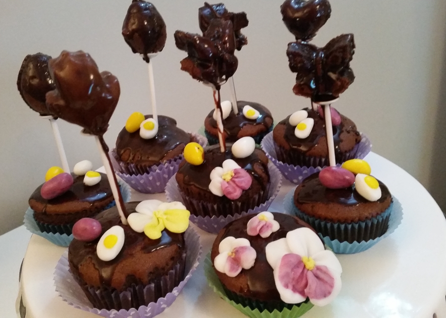 , ale każde w 3 postaciach( baby, babeczek i małych ciasteczek na patyczkach). Był to murzyn i cytrynowiec TU LINK. Wszystko ozdobiłam dodatkami z masy cukrowej wykonanymi przez moje dziewczynki.