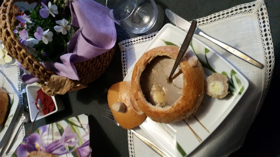 W chlebkach przygotowałam tradycyjny żurek z mięsnymi klopsami z ukrytym w środku przepiórczym jajem.
