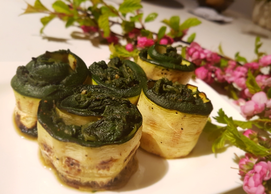 Mój ulubiony szpinak i moja ulubiona cukinia stanowią smakowity komplet we wspólnym zestawie. Jest tylko jeden warunek danie nie może być mdłe. Moje roladki są delikatnie pikantne.