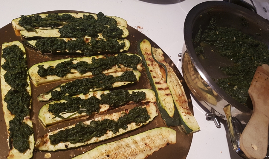 10. Na plastry cukinii ułożyłam duszony szpinak