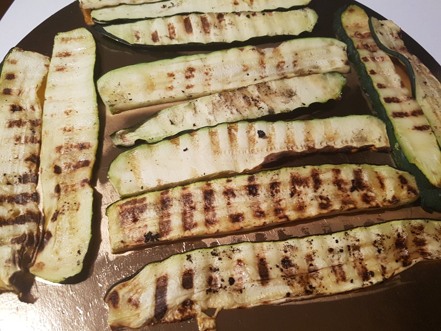 9. Plastry ugrillowanej cukinii posypałam ostrą papryką i bardzo delikatnie solą