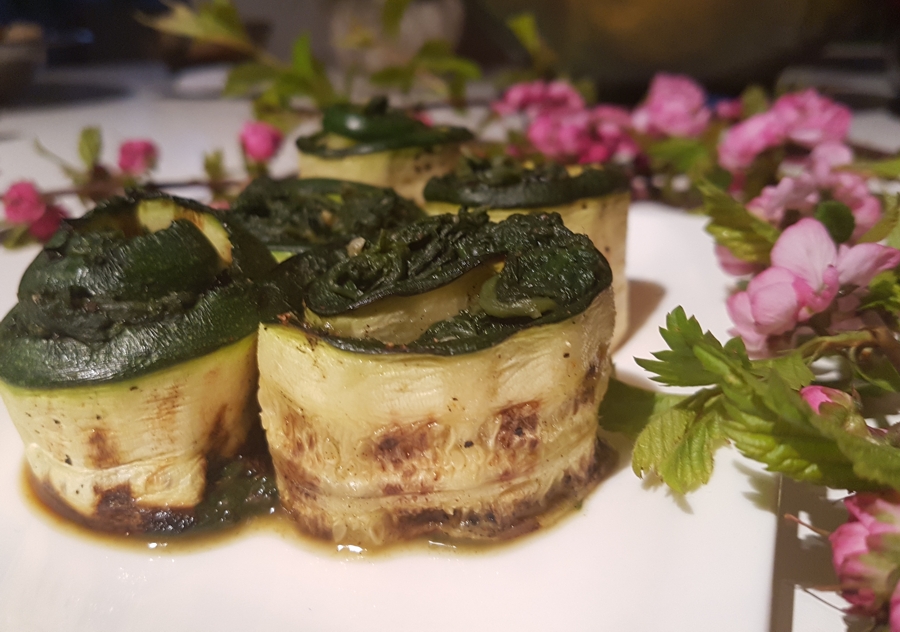 Roladki warzywne: grillowana cukinia ze szpinakiem