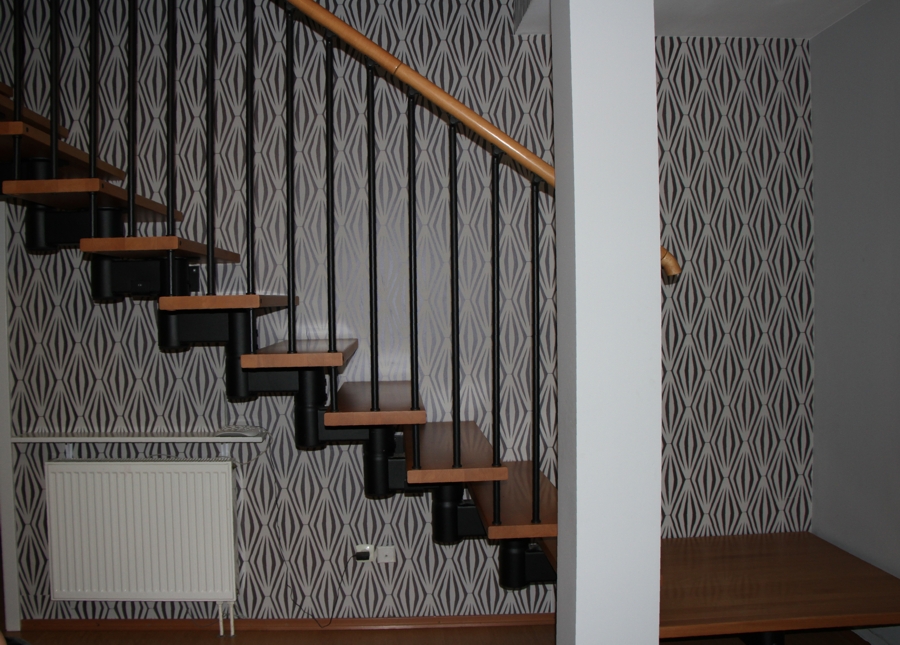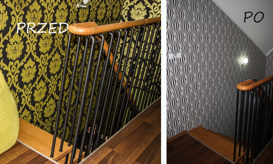 Nowa tapeta jest dla mnie super. Ładnie kontrastuje z kolorem schodów i poręczy – nadal są piękne a wybraliśmy je 12 lat temu:)