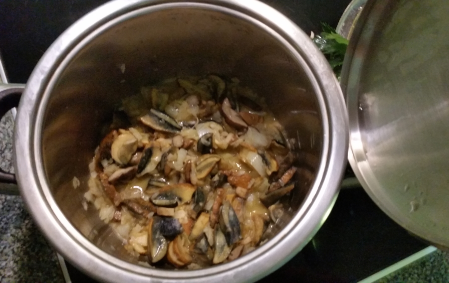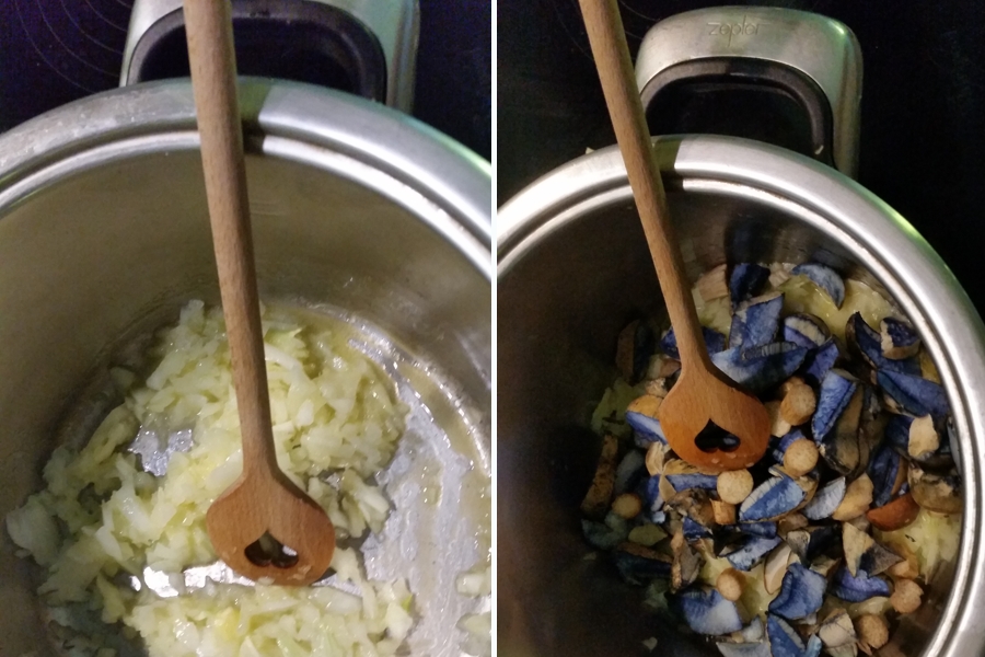1.Zupę grzybową zawsze zaczynam od duszenia grzybów z cebulką i czosnkiem na maśle nie na patelni tylko bezpośrednio w garnku.