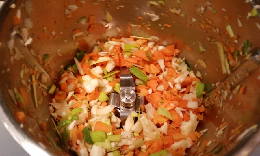 4.Warzywa łącznie z porem rozdrabniam w TM- wszystko oprócz liści selera i ziemniaków.